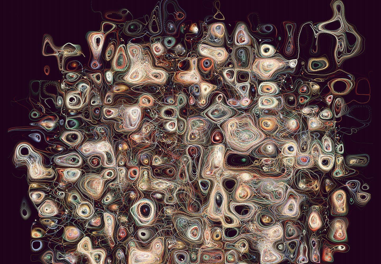 The explorer version of this piece, as premiered at KEF Music Gallery, London in August 2024. Features an original aleatoric soundtrack by composer Murphy James. Make sure to zoom into the piece and pan around: there's much more detail than you can see in your browser at 1x resolution. Refresh for a new animation. (Will work on mobile, but you will be restricted to rendering a 1/6 portion of the canvas.)